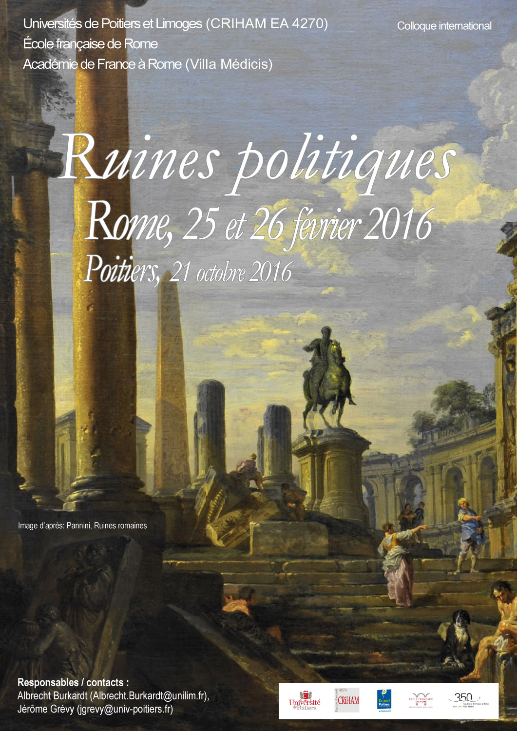 Colloque international organisé par le laboratoire Criham (Université de Poitiers et Limoges), l'École française de Rome et l'Académie de France à Rome (Villa Medici), sous la direction d'Albrecht Burkardt et de Jérôme Grévy.