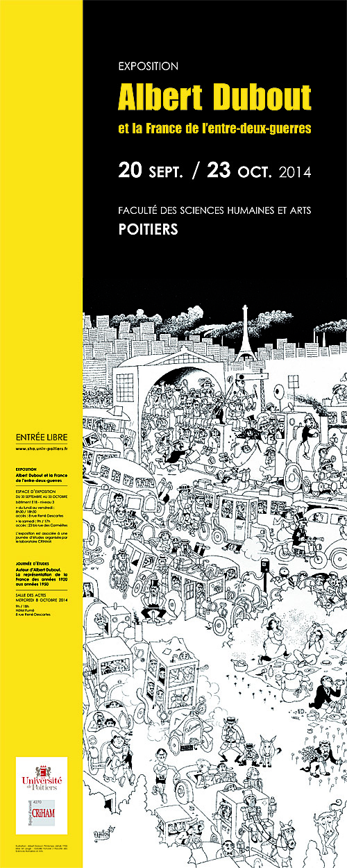 Exposition réalisée par Isabelle Fortuné et Solange Vernois, en association avec la journée d'études Autour d’Albert Dubout. Textes : Fabien Archambault (Criham / Université de Limoges), François Dubasque, Solange Vernois (Criham / Université de Poitiers).
