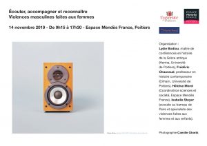 En 2019, plus d’une centaine de femmes ont trouvé la mort en France, sous les coups de leur conjoint ou ex-conjoint. Une femme tuée tous les trois jours se transforme en une femme tous les deux jours… À la suite de plusieurs colloques, journées, tables rondes, conférences, cette journée propose d’échanger sur l’accueil, l’accompagnement, l’écoute des femmes victimes de violences masculines avec les interventions de professionnelles et de chercheuses de diverses disciplines. À cette occasion, l’exposition Une femme sur trois est présentée, ainsi que le livre qui en est issu.