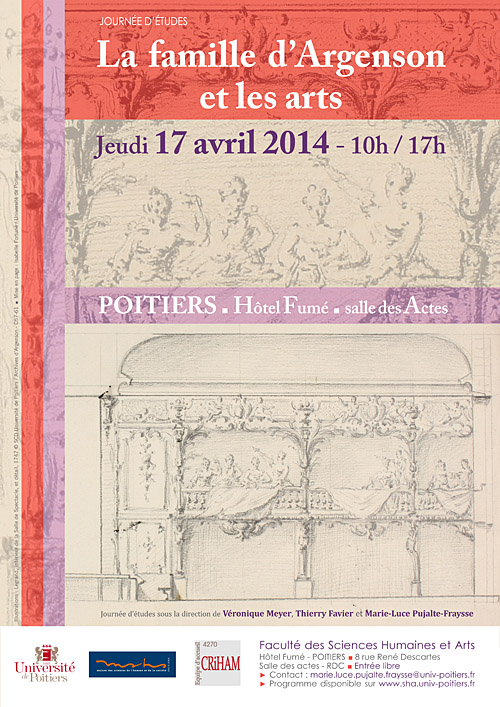 Cette journée d’études fait suite à deux sessions tenues en avril et novembre 2013, qui étaient consacrées aux manifestations scientifiques du programme de recherche lancé fin 2012 par les historiens d’art du laboratoire Criham avec le soutien du Fonds ancien de la Bibliothèque Universitaire de Poitiers et la MSHS de Poitiers.