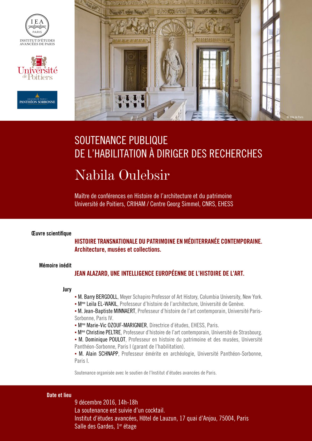 – M. Dominique Poulot, Professeur en histoire du patrimoine et des musées, Université Panthéon-Sorbonne, Paris I (garant de l’habilitation)
